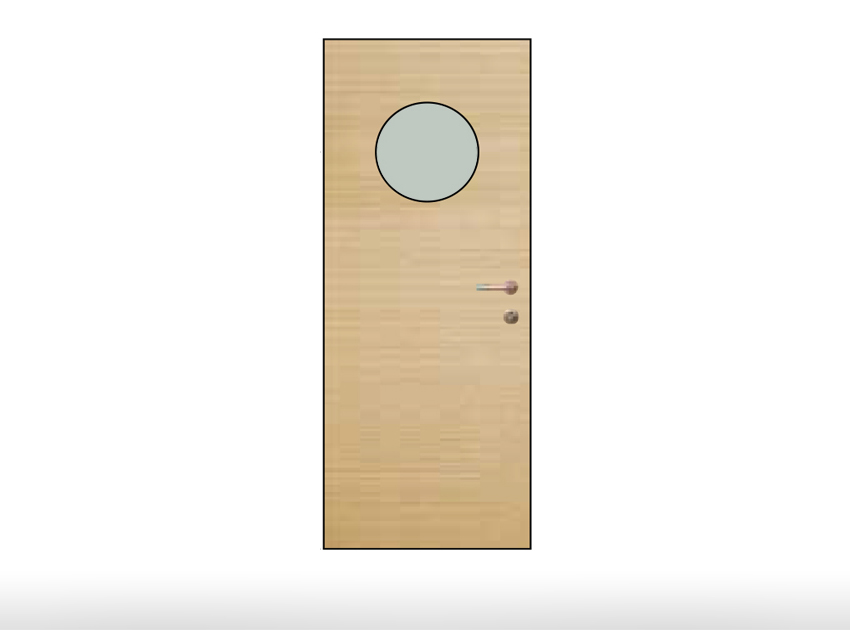 Model A8 glazing option for application in wooden, vinyl, lacquered, HPL and phenolic doors.