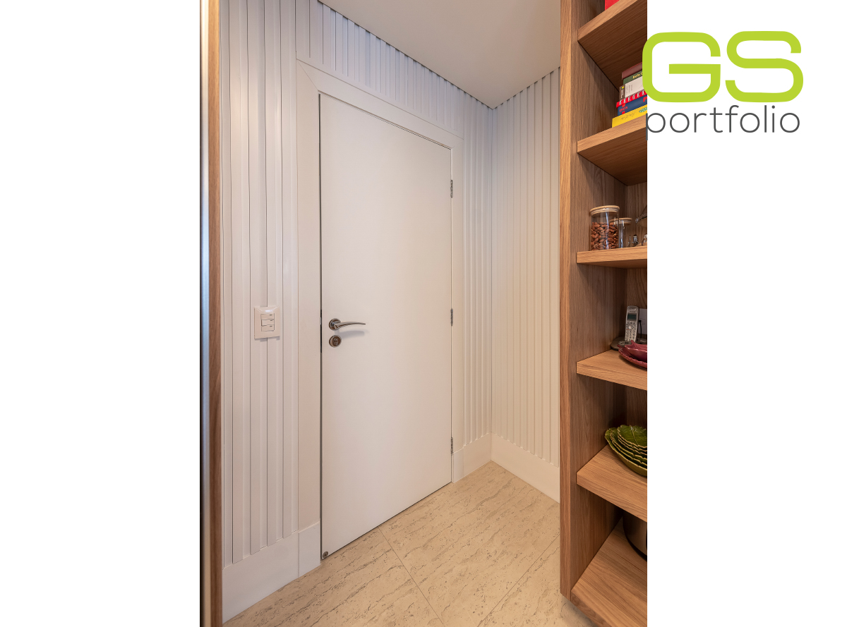 Aplicação de friso decorativo 23,5 x 8 mm em BRANCO. Moradia Unifamiliar.